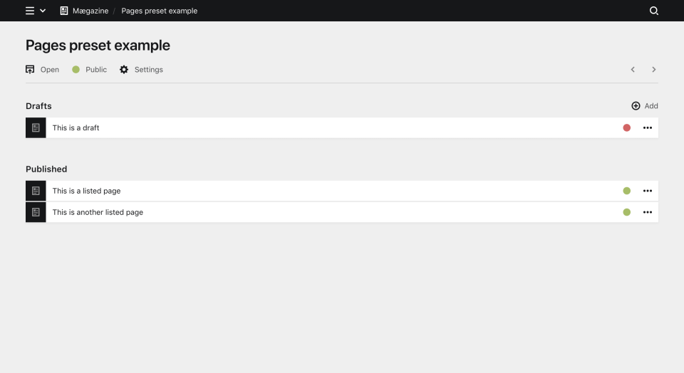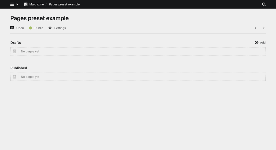 The Pages preset is intended for container pages like a blog with subpages in different states of their publishing cycle
