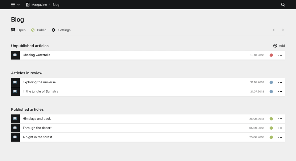 This preset is again extendable. For example, if you want to add a section for pages in review while at the same time using predefined sections with additional options, you can do it like this using the keywords drafts, unlisted, and listed: